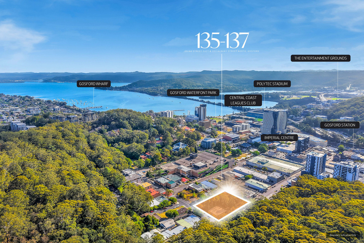 Enjoying dual street frontages to Erina Street East and Albany Street North, this rare offering is ideally suited for a high-rise mixed-use development. The site is superbly located within 77km* of Sydney CBD and 92km* from Newcastle, benefiting from proximity to retail precincts, healthcare services, quality education facilities, public transport, and other key local amenities.